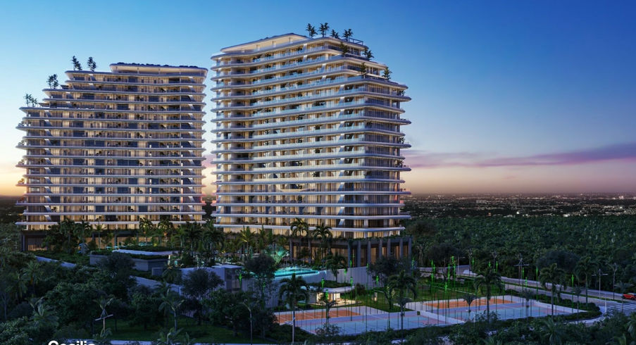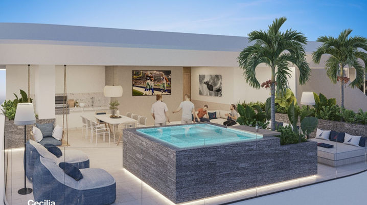 Beach club in Isla Blanca • Swimming pools • Rooftop for adults with 360° views • Spa • Gym • Cinema • Restaurants • Sports courts • Pet spa • Co-working • 24/7 security
